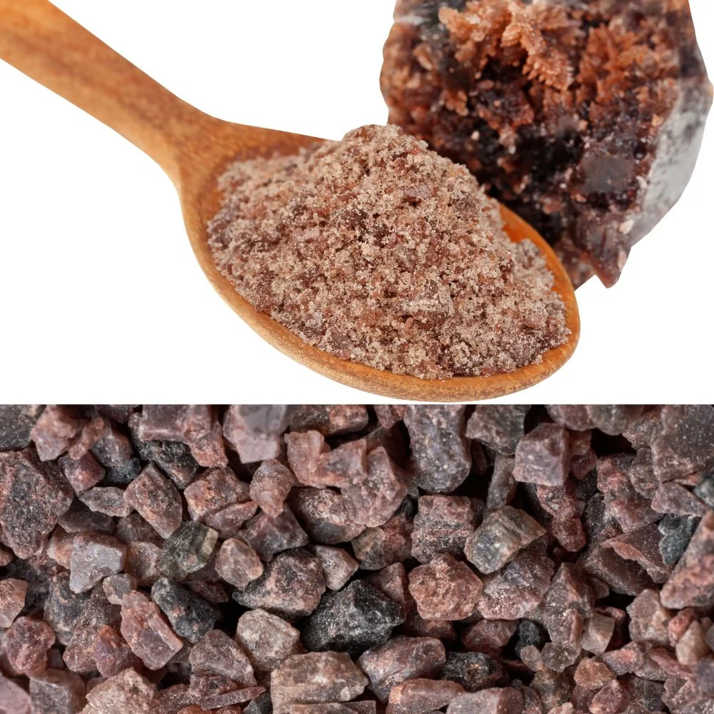 हिंदी में काले नमक को "काला नमक" कहा जाता है, जो भट्टी में पकाए गए एक प्रकार का सेंधा नमक है जिसकी गंध और स्वाद विशिष्ट रूप से सल्फरयुक्त होता है। इसका उपयोग व्यंजनों जैसे चाट, रायता और चटनी में इसके अनूठे स्वाद और पाचन गुणों के कारण व्यापक रूप से किया जाता है। यह पेट की गैस, एसिडिटी, सूजन (bloating) और कब्ज में तुरंत राहत देता है। हाई बीपी (High BP) के रोगियों के लिए सामान्य नमक की तुलना में बेहतर विकल्प है। स्किन को साफ़ रखने और बालों के झड़ने-रूसी को कम करने में उपयोगी होता है।