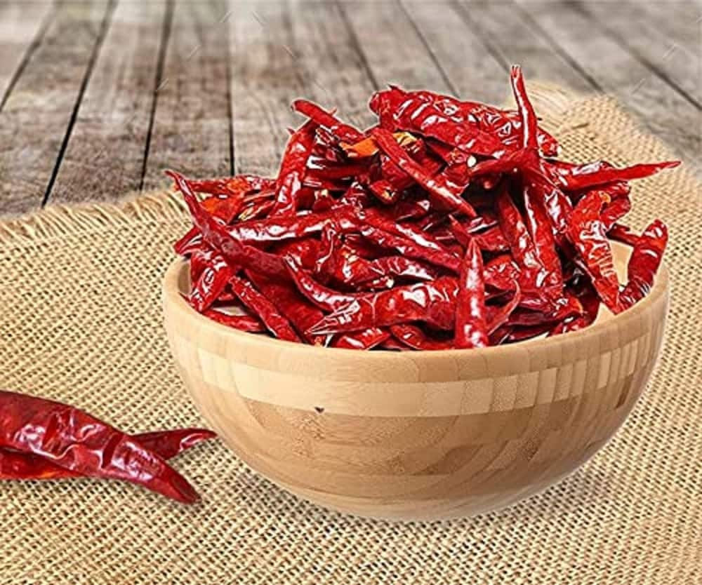 साबुत लाल मिर्च (Dry Red Chilli) भारतीय रसोई का एक प्रमुख सूखा मसाला है, जिसका उपयोग दाल, सब्जी, चटनी और तड़के में स्वाद और तीखापन बढ़ाने के लिए किया जाता है। मुख्य रूप से, कश्मीरी मिर्च का उपयोग रंग के लिए और गुंटूर/सन्नम मिर्च का उपयोग तीखेपन के लिए होता है, जो भारत में सबसे लोकप्रिय हैं। इसका उपयोग तड़का लगाने, आचार (Achar) बनाने, और करी को गहरा लाल रंग देने के लिए किया जाता है। स्वाद: यह तीखी, तीक्ष्ण और कभी-कभी हल्की (कश्मीरी मिर्च) हो सकती है।