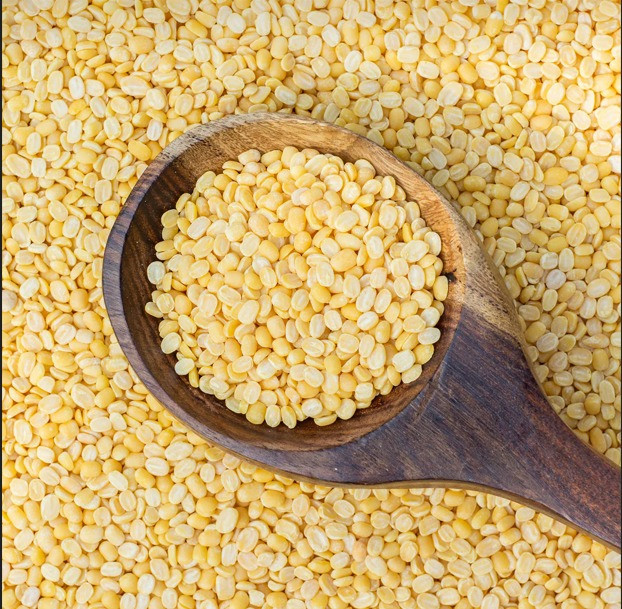 रंग और रूप: यह हल्की पीली, बिना छिलके वाली (धुली) और छोटी, साबुत दानेदार दाल होती है।
